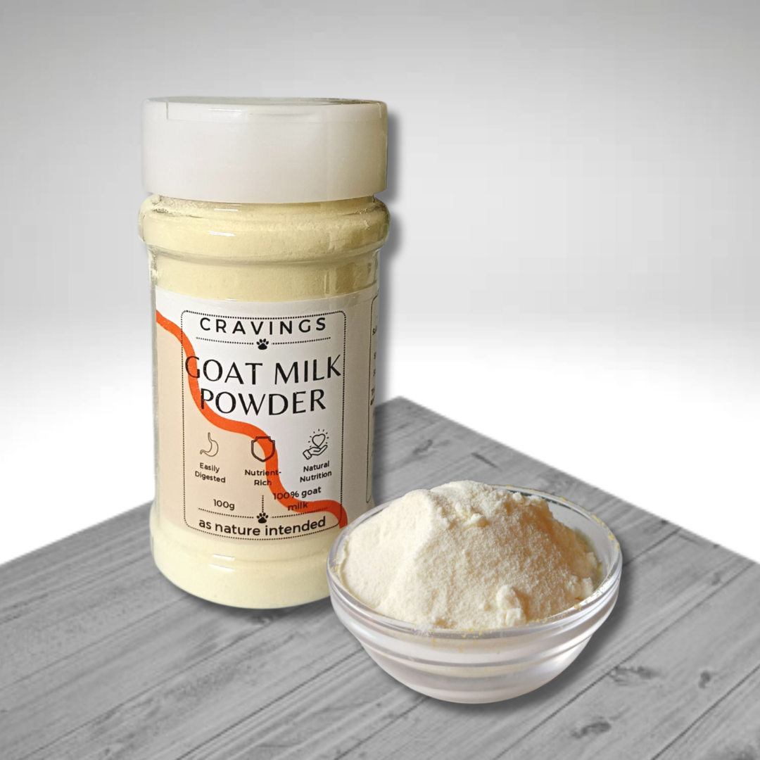 Support your pets’ health with our goat milk powder 100g. Rich in essential vitamins and minerals, it provides natural nutrition that aids in digestion and boosts their immune system. Easy to mix and serve, it's a wholesome addition to their diet, ensuring they stay happy and healthy. Served in a jar with a sprinkle and spoon opening. 100% goat milk.